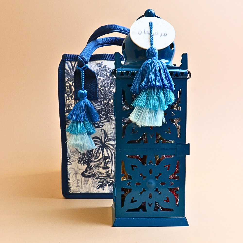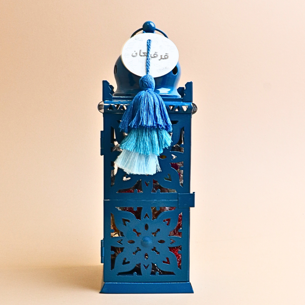 Blue Lantern (L : 10 cm,w : 10 cm h : 30 cm )