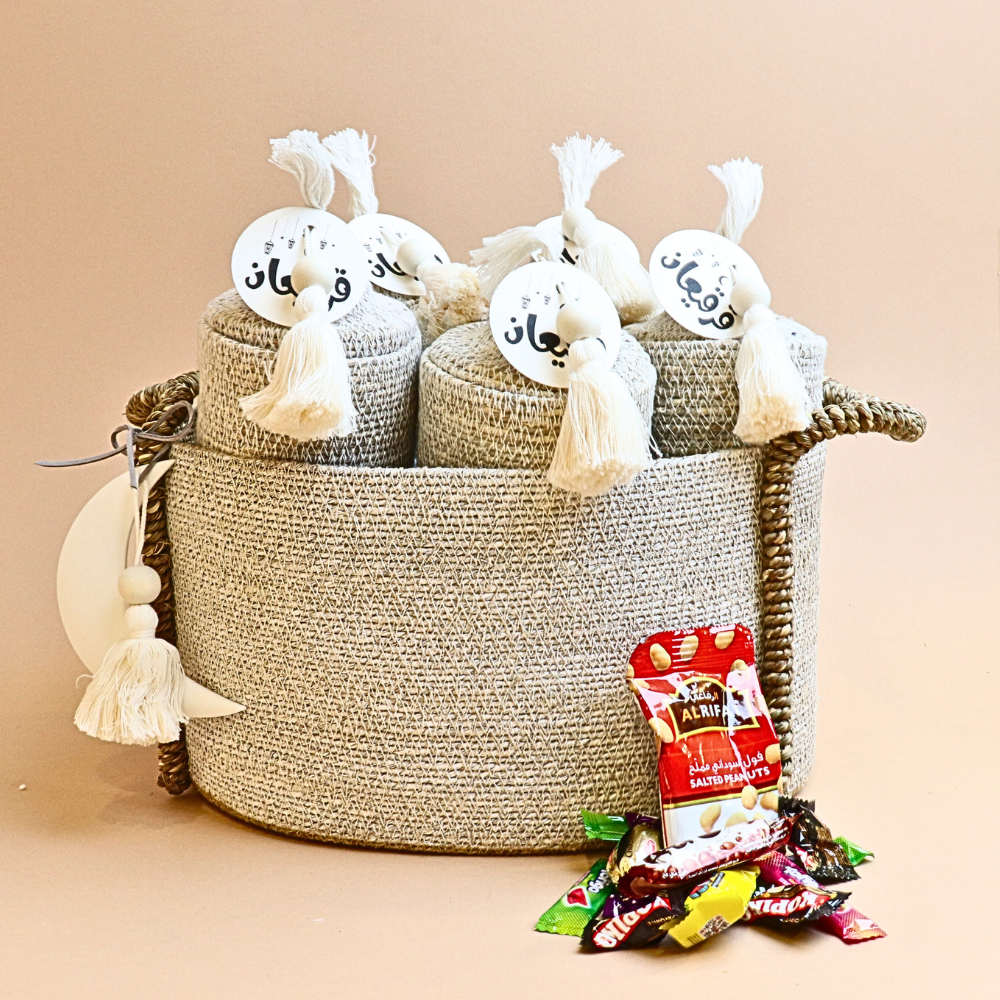 - Striped small handmade basket with 5 pcs small basket with lid