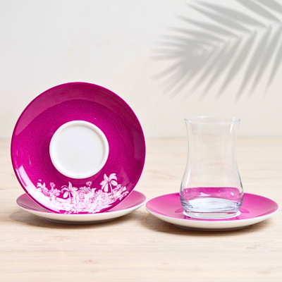 Set 6 pieces of Istikana , Transparent glass with island saucer.