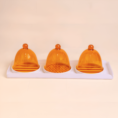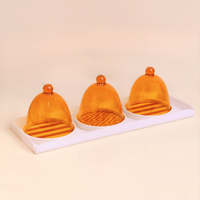 Cake plates with cover & acrylic tray (yellow-pattern/stripe)
