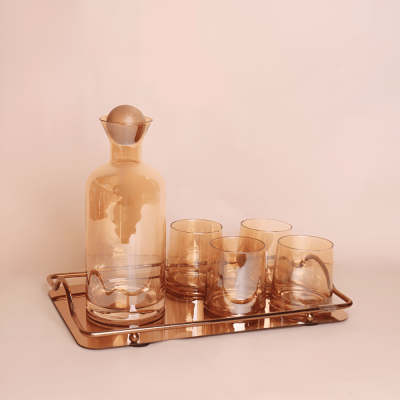 دولكة زجاجية من زجاج البورسليكات مع 4 أكواب وصينية