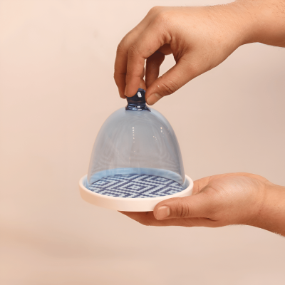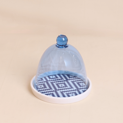 قاعدة سيراميك مع ( غطاء بنقسجي ضد الكسر) بتصميم منقوش - حجم صغير