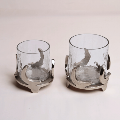 يعد حامل الشموع على شكل هلال طريقة رائعة لإضافة لمسة من الأناقة إلى ديكور منزلك. يتميز بقاعدة من الألومنيوم مع زجاج.