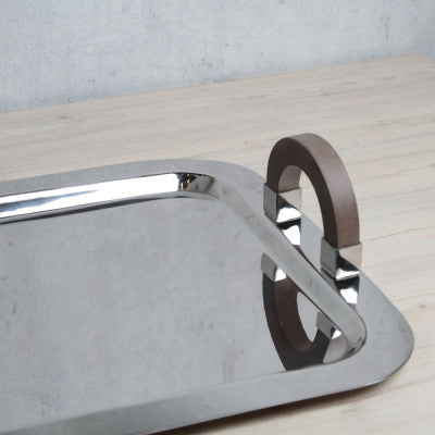 صينية تقديم من الستانلس ستيل بمقبض خشبي