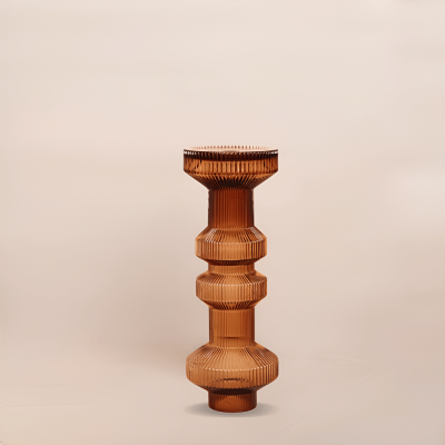 حامل شموع زجاجي زخرفة إسلامية - لون عنبر (واسطة)