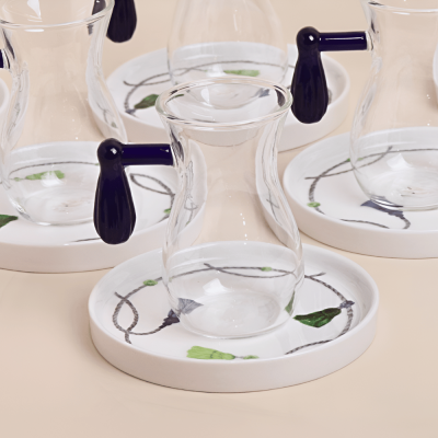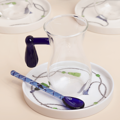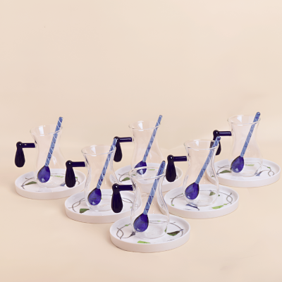 طقم استكانات مع ملاعق شاي بتصميم كراكش -أزرق