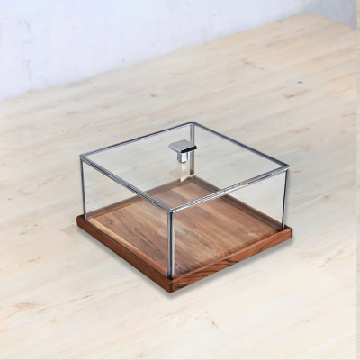 تتميز هذه القطعة بقاعدة خشبية مربعة، وهي مثالية لتقديم الكيك والحلويات والمزيد لضيوفك في وجبة الغداء أو العشاء. مغطاة بغطاء مربع الشكل من الزجاج