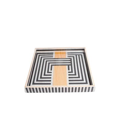 صينية خشبية مطعمة بالأكريليك- أسود و ذهبي