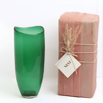 فازة من الزجاج باللون الأخضر ذات الجودة العالية حيث يمكن استخدامها كقطعة زينة لديكور المنزل أو تنسيقها مع مجموعة من الورود مما يضيف لمسة أنيقة لمنزلك