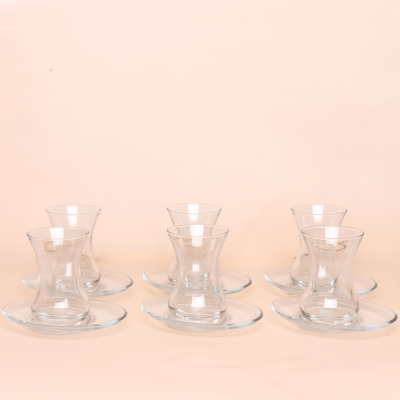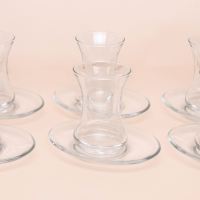 طقم إستكانة زجاجي شفاف