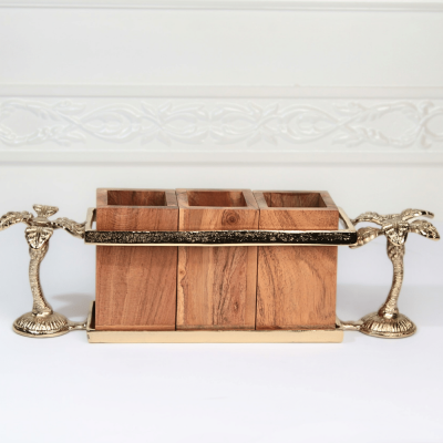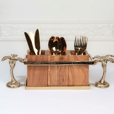 حامل أدوات مائدة خشبي بمقبض على شكل نخلة - ذهبي