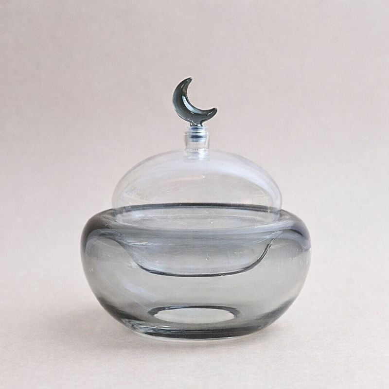 وعاء زجاجي مع غطاء – رمادي