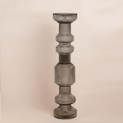 حامل شموع زجاجي زخرفي إسلامي - رمادي (كبير)
