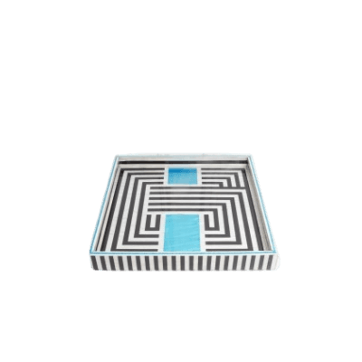 صينية خشبية مطعمة بالأكريليك- أسود و أزرق