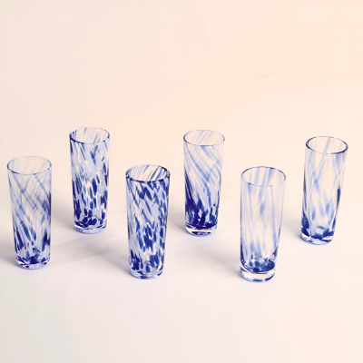 طقم كاسات زجاجية صغيرة - أزرق