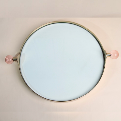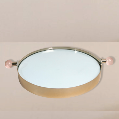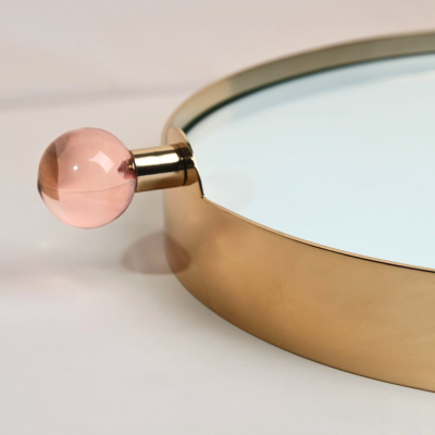 صينية تقديم بمرآة من الستانلس ستيل مع مقبض كروي من الأكريليك باللون الوردي
