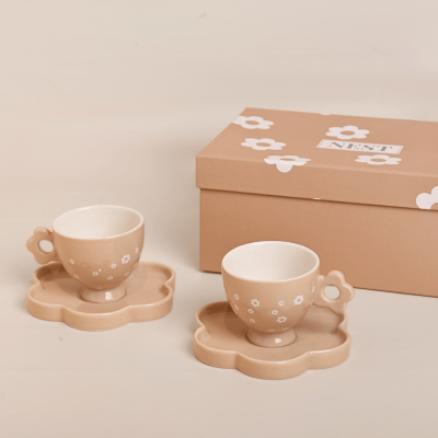 طقم فناجين تركي مع صحن بتصميم الورد، 2 قطعة