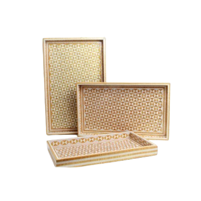 صينية خشبية مطعمة بالأكريليك - لون كركمي
