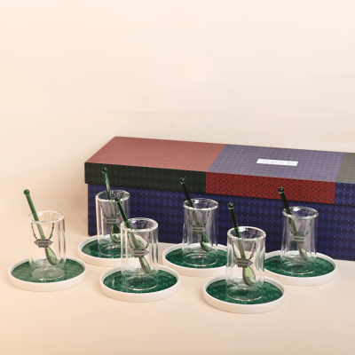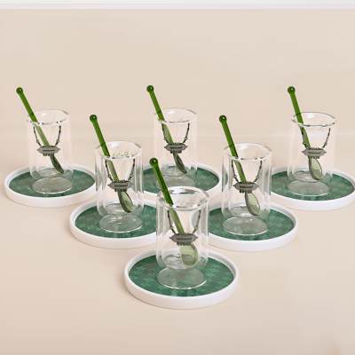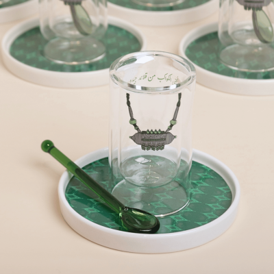 استكانات بتصميم الحُلِي مع صحون ومعالق، أخضر - 6 قطع