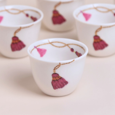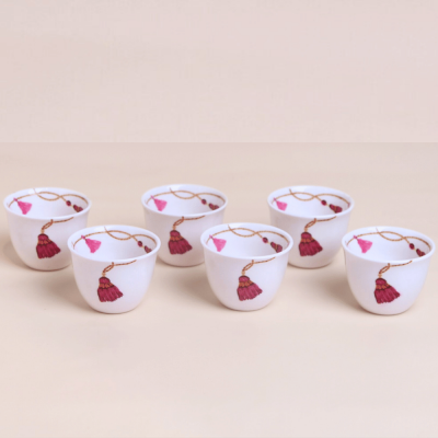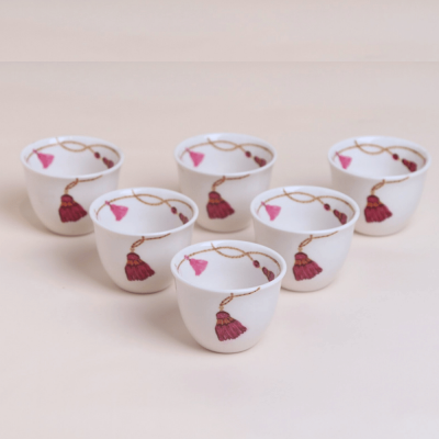 طقم فناجين قهوة عربية بتصميم كراكش - وردي