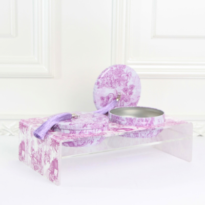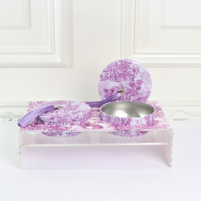 ستاند تقديم يحتوي على عدد (2) علب بطبعة الجزيرة باللون البنفسجي .
