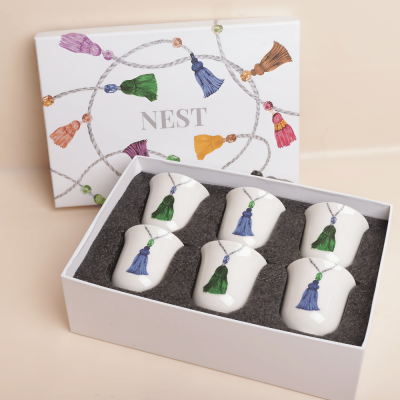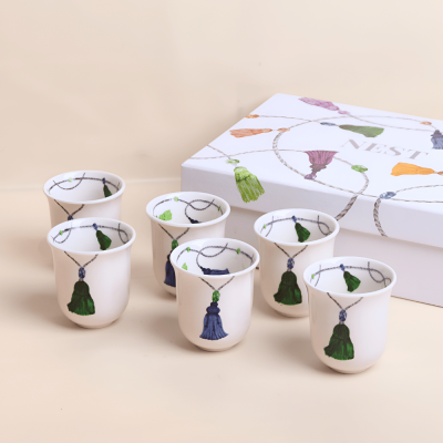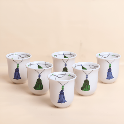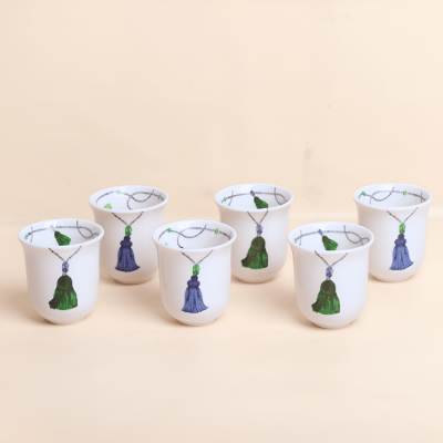 طقم فناجين قهوة عربية طويلة بتصميم كراكش - أخضر