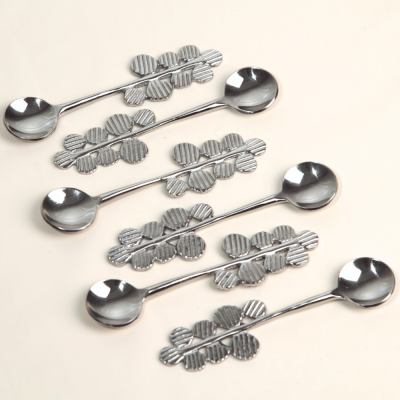 طقم ملاعق شاي كاندي 6 قطع باللون الفضي اللامع