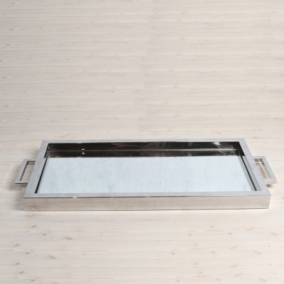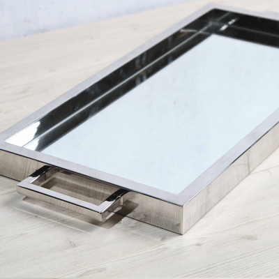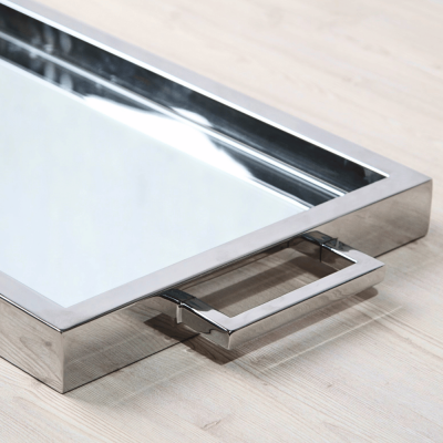 صينية تقديم مستطيلة جميلة بمقابض وسطح من الستانلس ستيل
