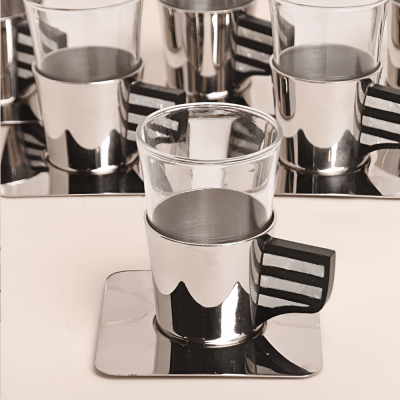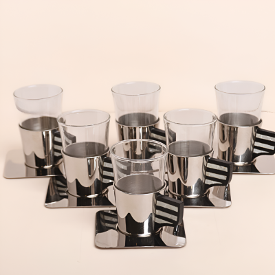 ٦ استكانات مع ٦ صحون ستيل