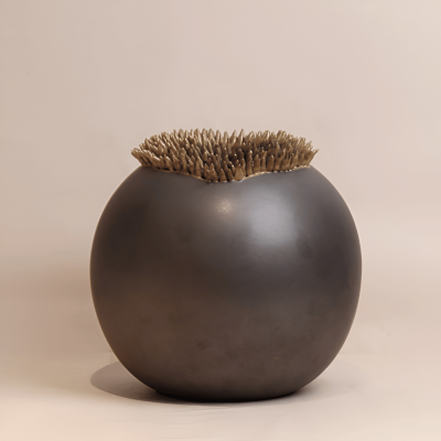 فازة سيراميك باللون الأسود والذهبي