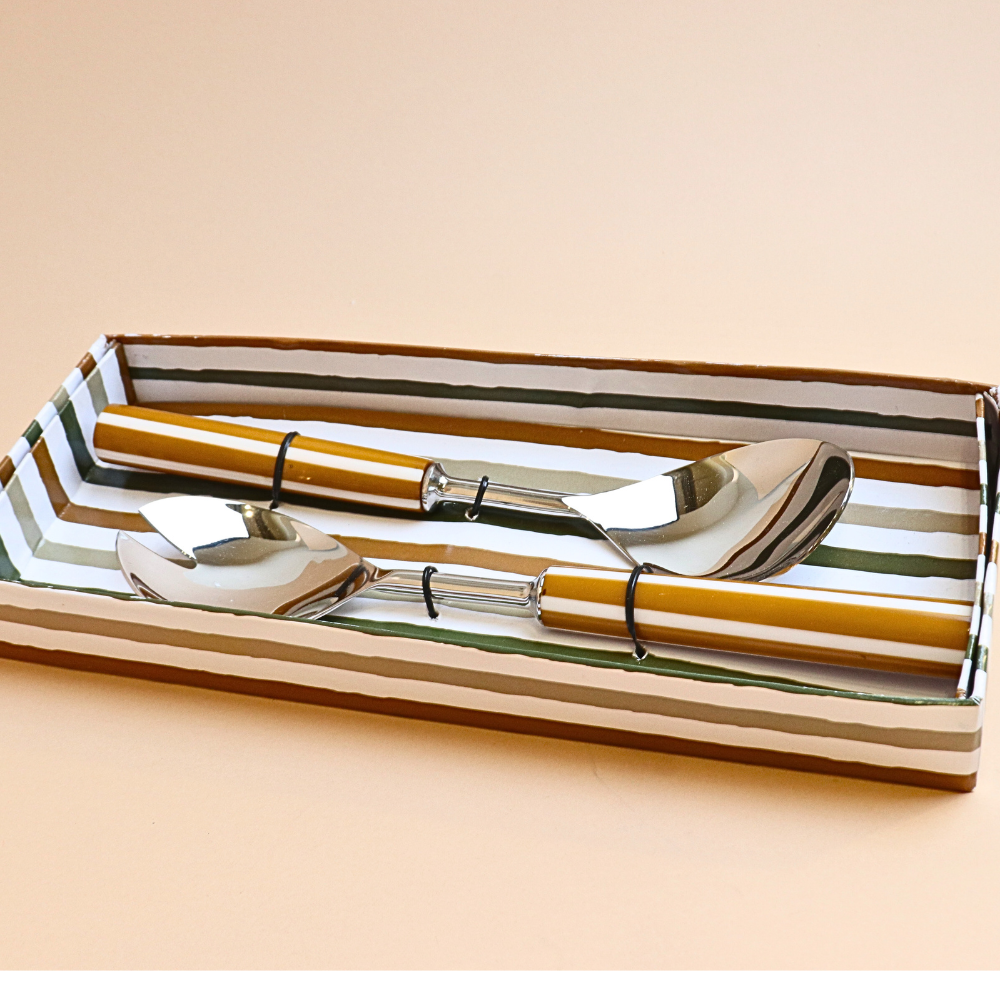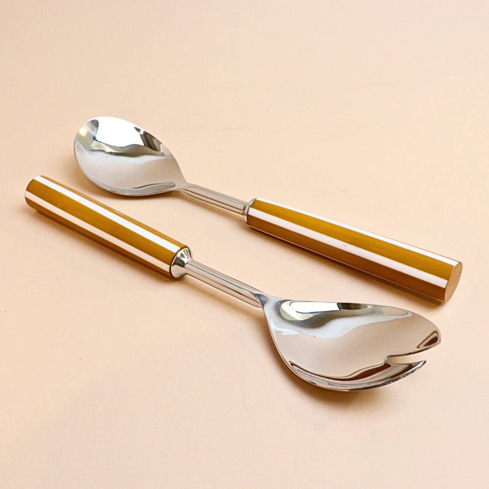 ملعقة تقديم سلطة مخططة – قطعتين (أصفر خردلي)