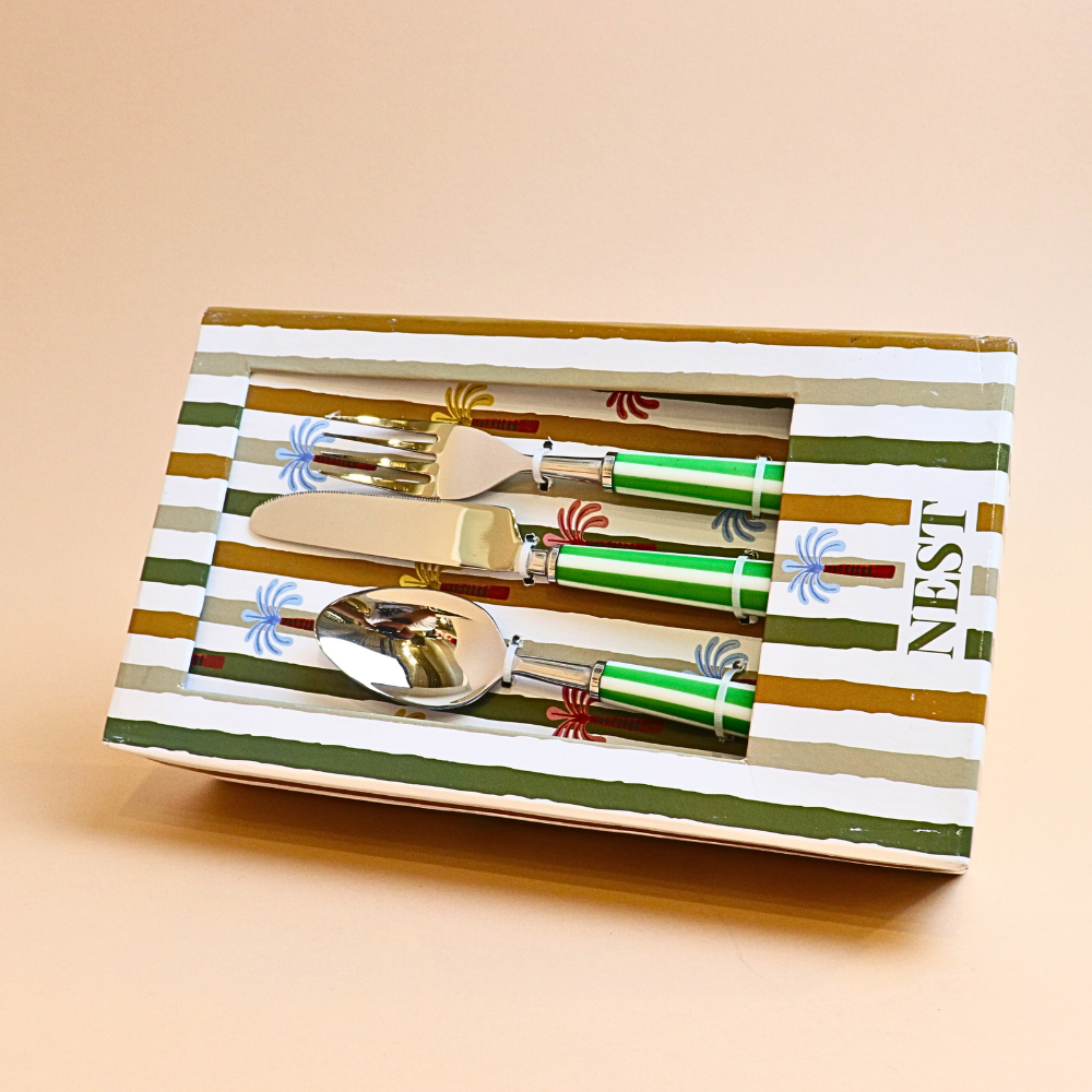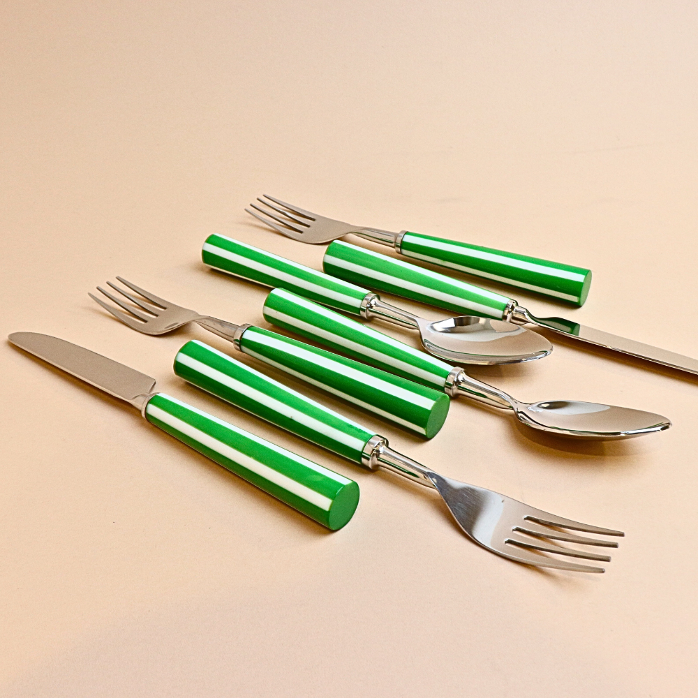 طقم أدوات مائدة مخطط (أخضر) – 18 قطعة