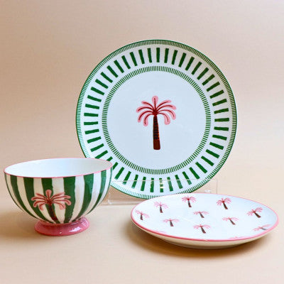 طقم سفرة مخطط (18 قطعة) – أخضر
