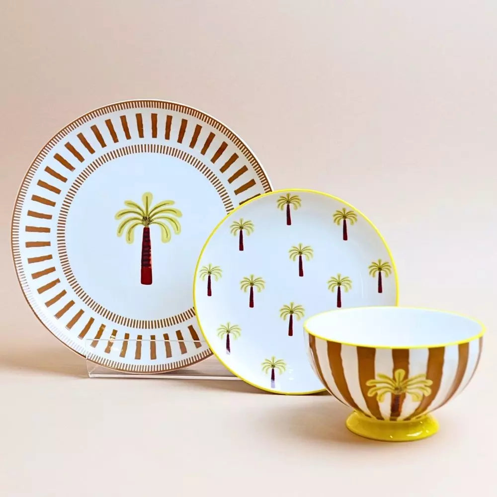 طقم سفرة مخطط (18 قطعة) – أصفر خردلي
