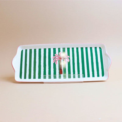 صينية مستطيلة مخططة – أخضر