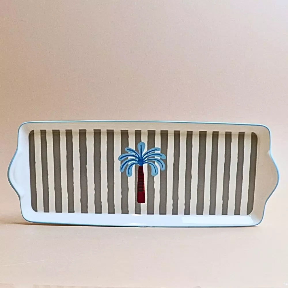 صينية مستطيلة مخططة – رمادي