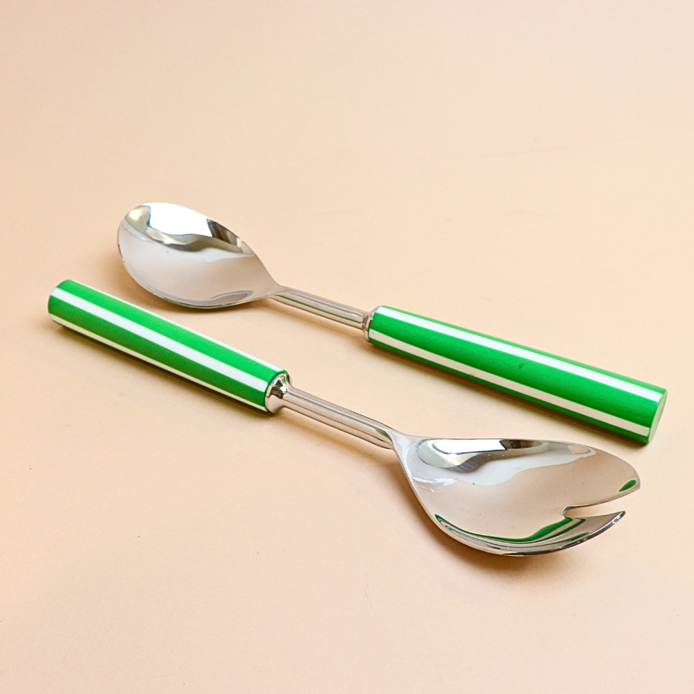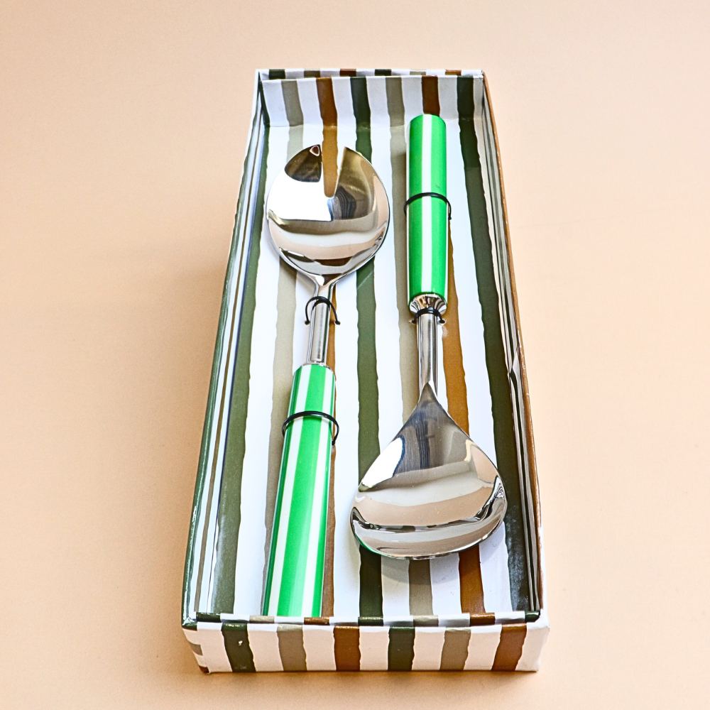 ملعقة تقديم سلطة مخططة – قطعتين (أخضر)