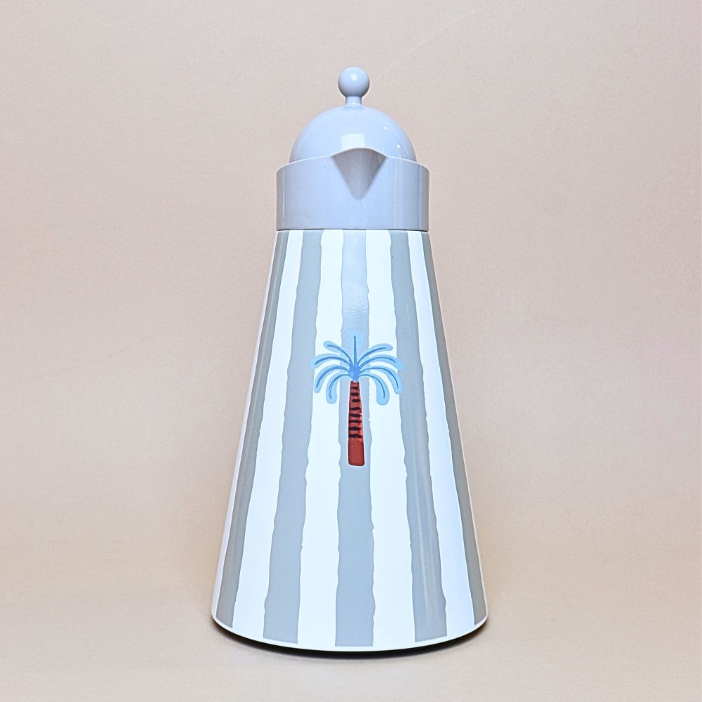 ترمس شاي ستانلس ستيل مخطط بعزل حراري (1 لتر) – رمادي