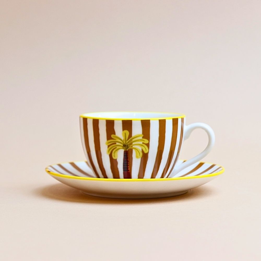 فنجان تركي مخطط مع صحن – أصفر خردلي (قطعتان)