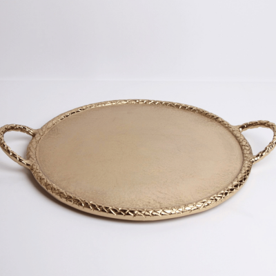 صينية تقديم من الالومنيوم باللون الذهبي - وسط
