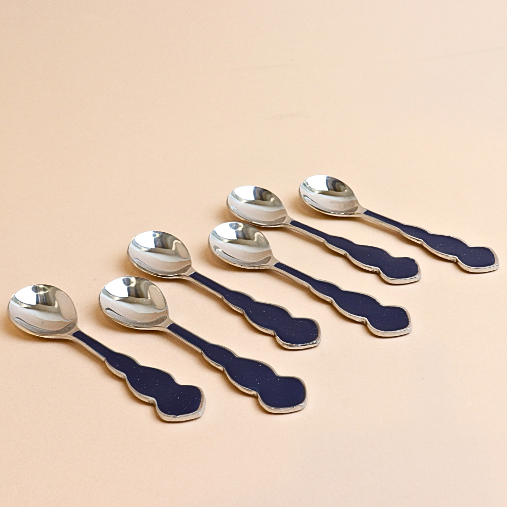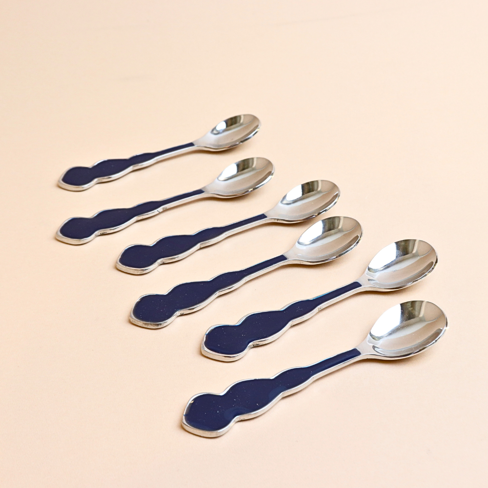 ملعقة شاي ستانلس ستيل بمقبض مموج – أزرق غامق