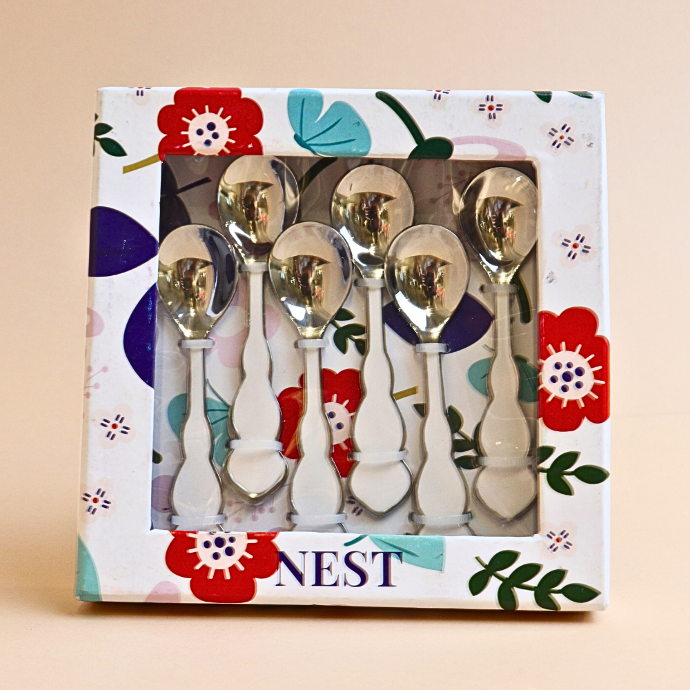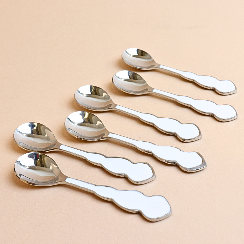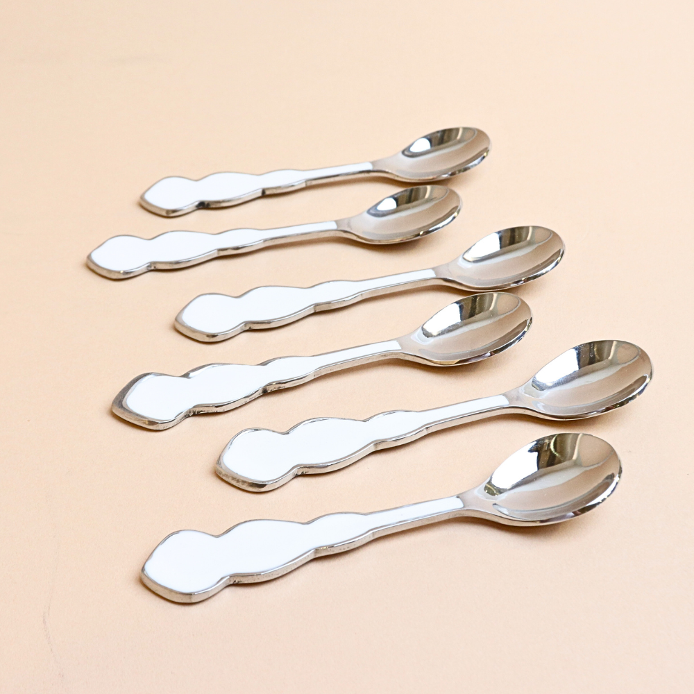 ملعقة شاي ستانلس ستيل بمقبض مموج - أبيض
