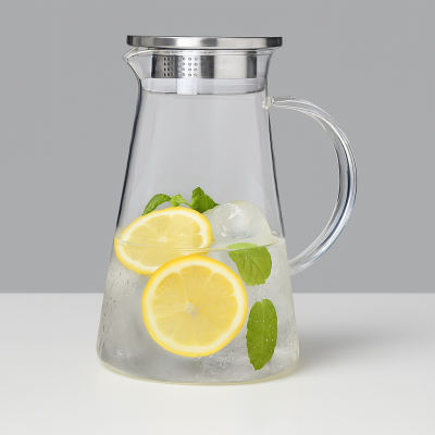 دولكه زجاجية شفافه ، مصنوعه يدويا ، لها غطاء محكم من الستيل مقاوم لصدا انيق ومميزعلى الطاولة يصلح للماء والعصائر والمشروبات البارده ويستخدم لجميع المناسبات والحفلات والمنازل