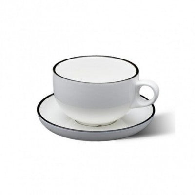 كوب شاي بورسلين مع الصحن باللون اوف وايت محدد بخط اسود ،انيق وجاذب على الطاولة والمناسبات والحفلات والمنازل