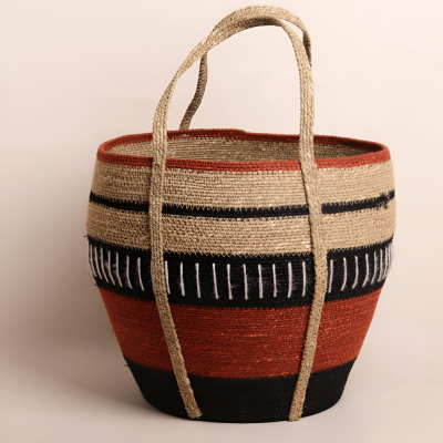 سلة يدوية مخططة - برتقالي / أسود (كبيرة)