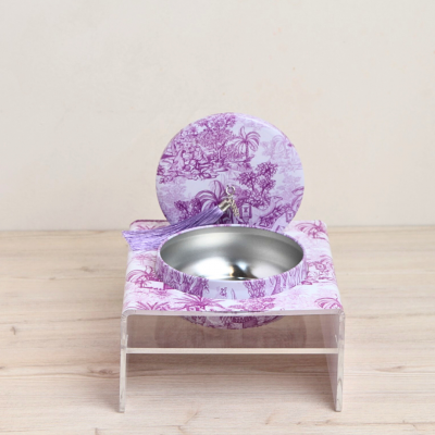 ستاند تقديم يحتوي على عدد (1) علبة بطبعة الجزيرة باللون البنفسجي.