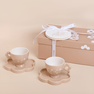 طقم فناجين تركي مع صحن بتصميم الورد، 2 قطعة