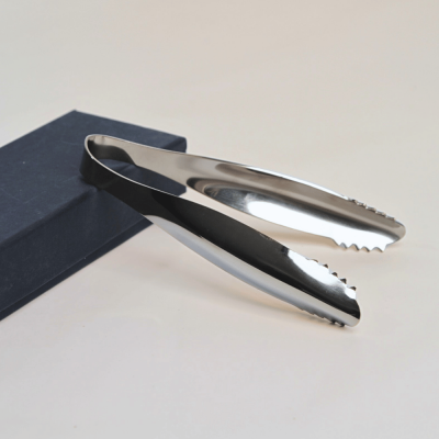 ملقط طعام فاخر من الستانلس ستيل باللون الفضي اللامع