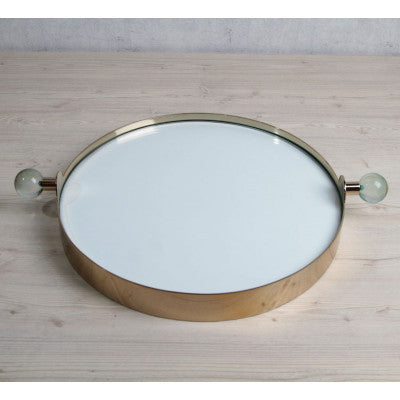 صينية تقديم بمرآة من الستانلس ستيل مع مقبض كروي من الأكريليك باللون الأخضر