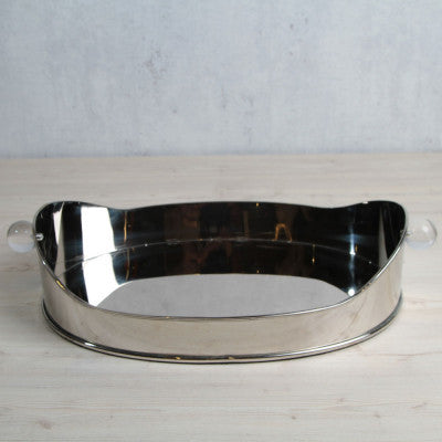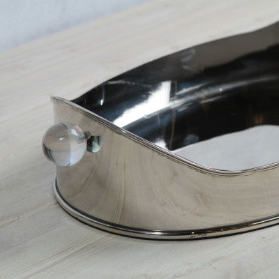 صينية تقديم جميلة مع مقبض كروي من الأكريليك شفاف وسطح من الستانلس ستيل